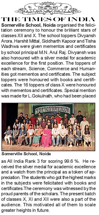 Somerville School, NOIDA has organised felicitation ceremony to honor the brilliant stars of classes XII and X.