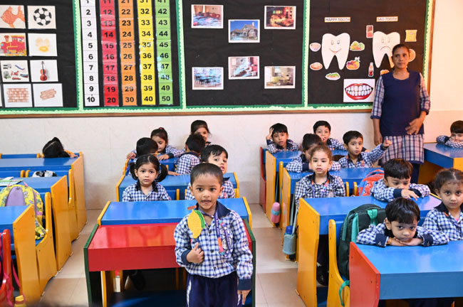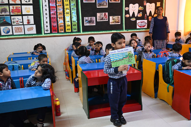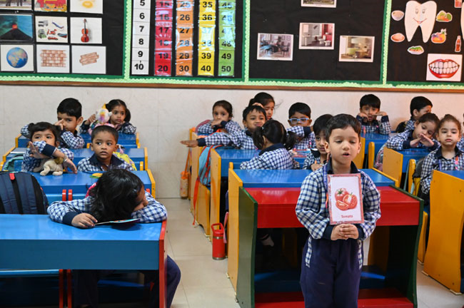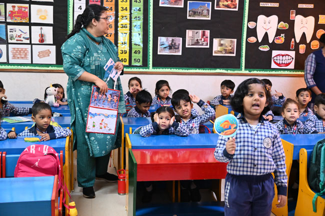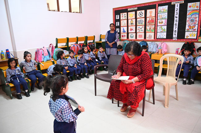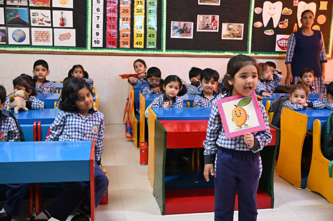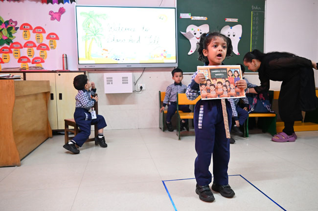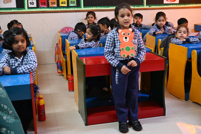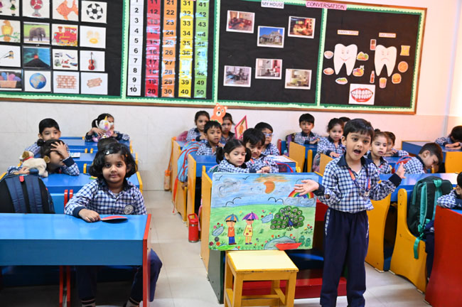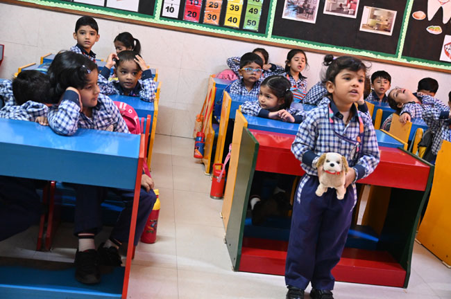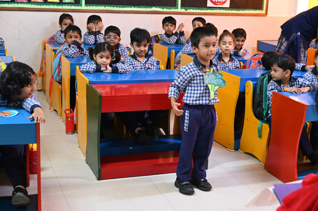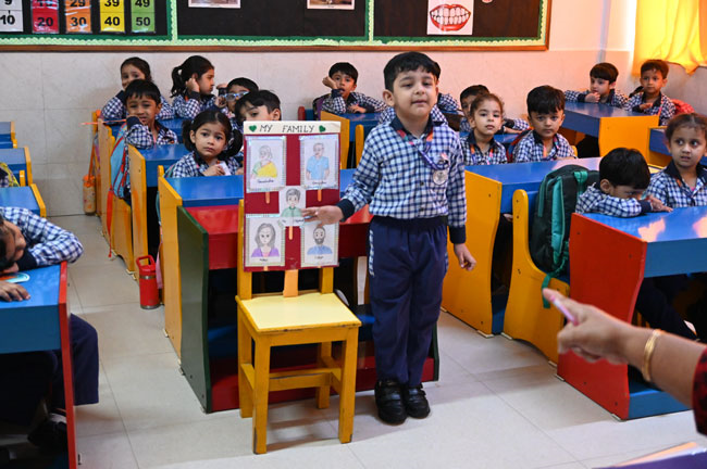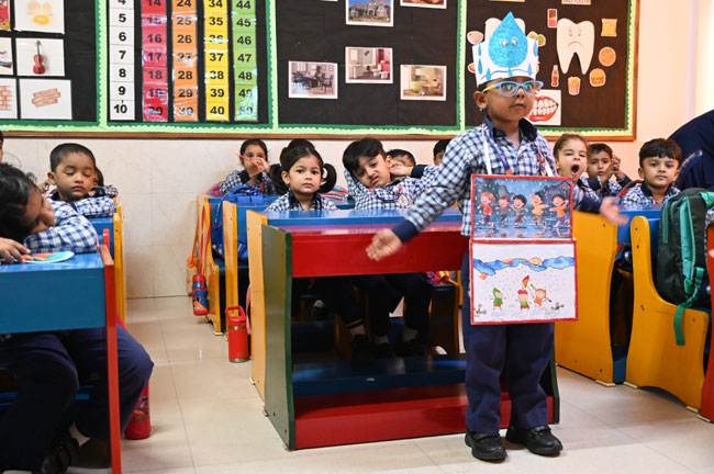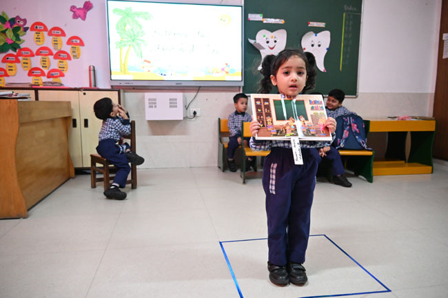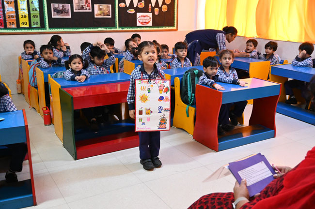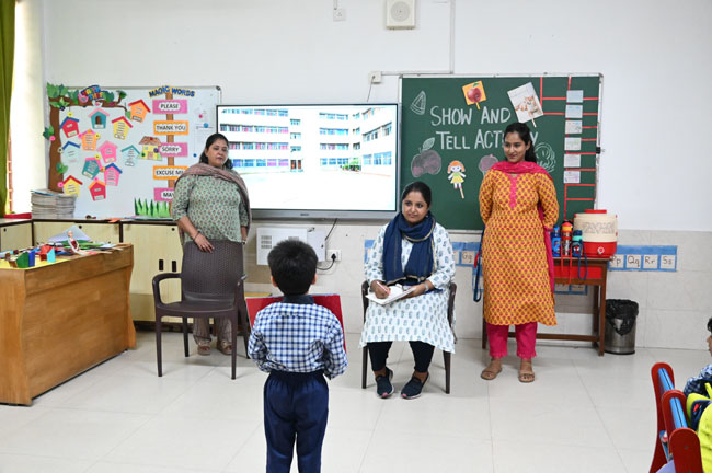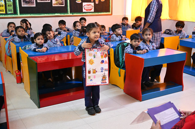 Show and Tell activity was organized by the Nursery class on July 30, 2025. The students confidently presented themselves with vibrant placards and showcased their communication skills and creativity confidently