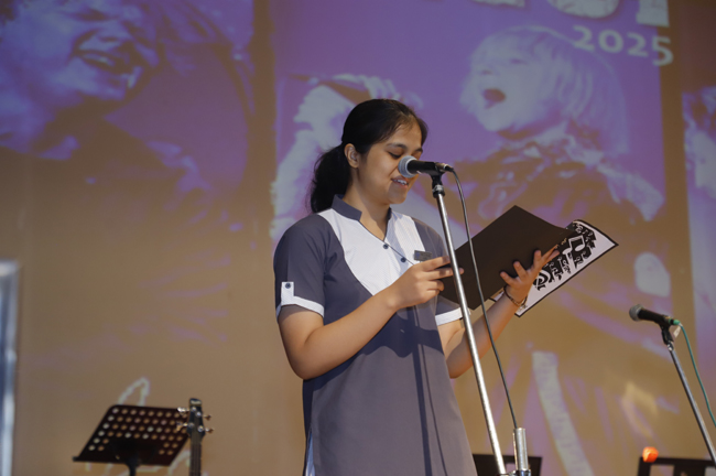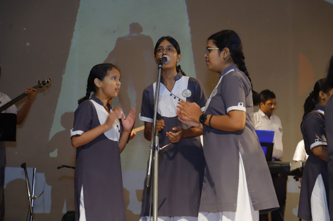 Somerville School NOIDA hosted the annual Inter House Western Music Competition, Syncopation, on 19th July 2025 at the Nelson Memorial Auditorium. More than 160 students participated in the competition. There were four categories, male solo, female solo, group song and band performance. Students of all four houses performed exceedingly well. The audience was mesmerised by the flawless presentation. It was also a special day as the Western Music teacher Ms.Tracy Fernandes who has served the school for 34 years is superannuating this year. So she was given a befitting farewell by her ex-students many of whom were already famous in the world of music. The western music department of Somerville School NOIDA will miss a wonderful teacher. The Chairperson and Director of Schools, Lott Carey Baptist Mission, Mrs.D.A. Tressler gave a heart warming speech to honour Ms.Tracy and the Principal Mrs.M.N Arul Raj wished her a tearful goodbye after her customary vote of thanks.