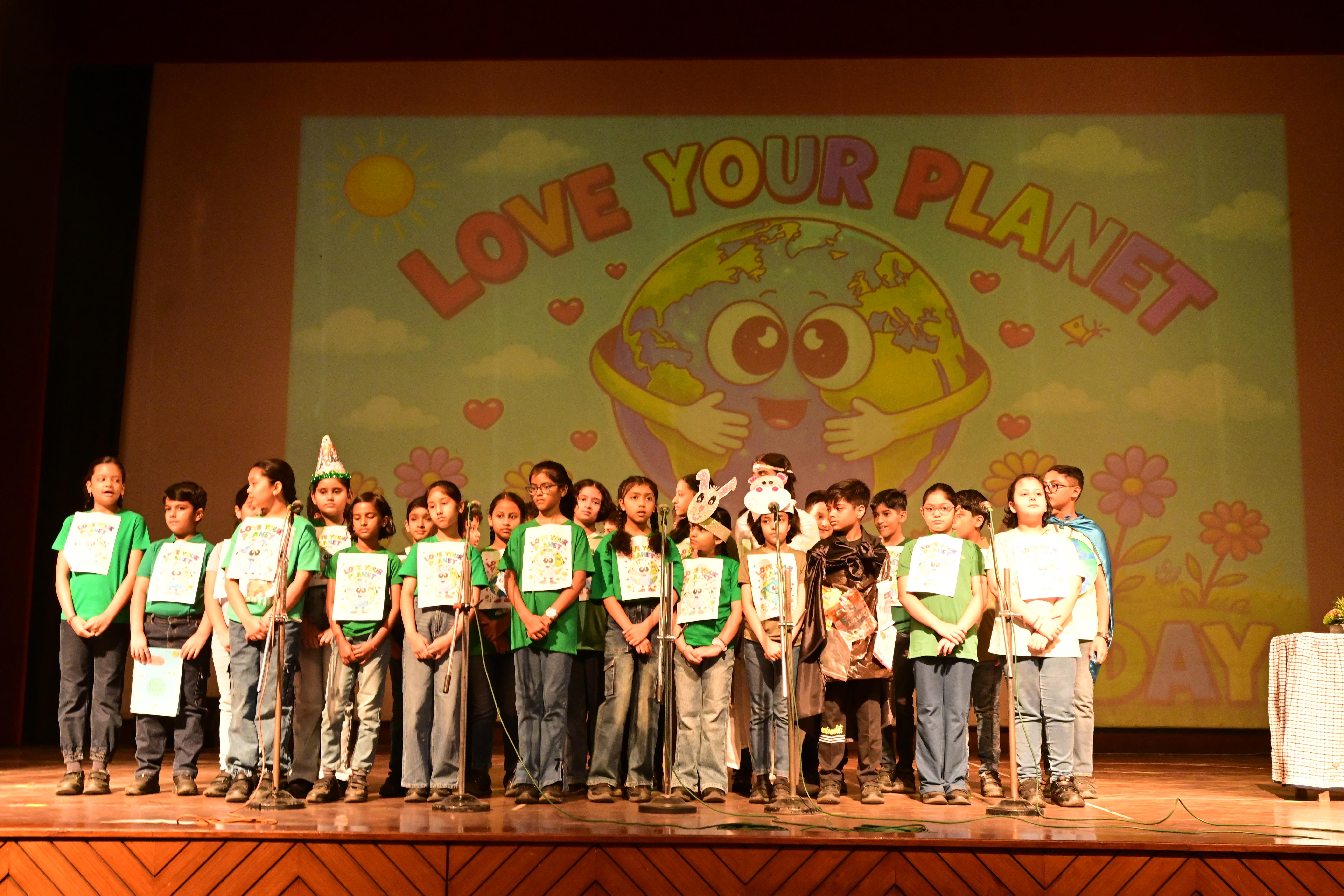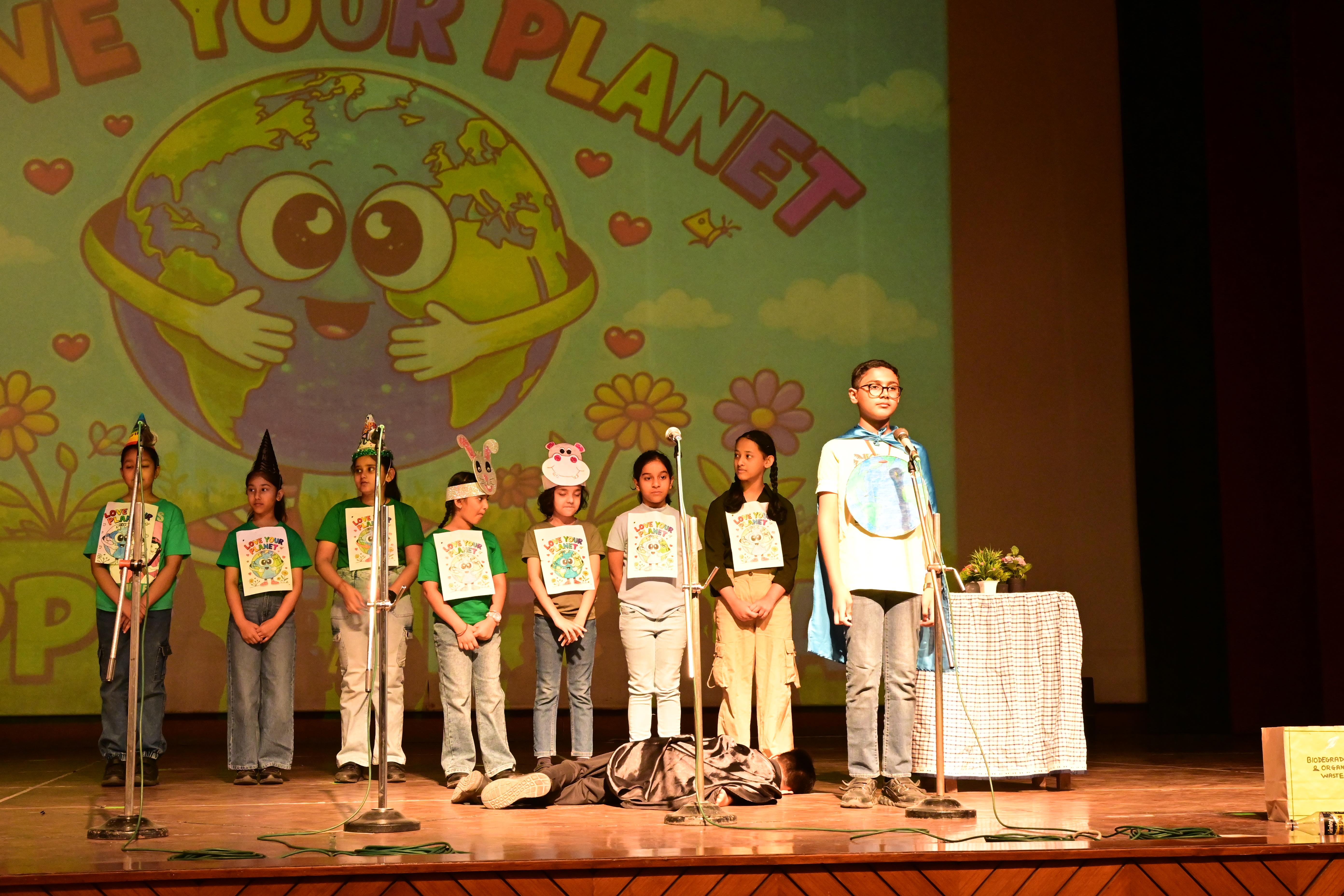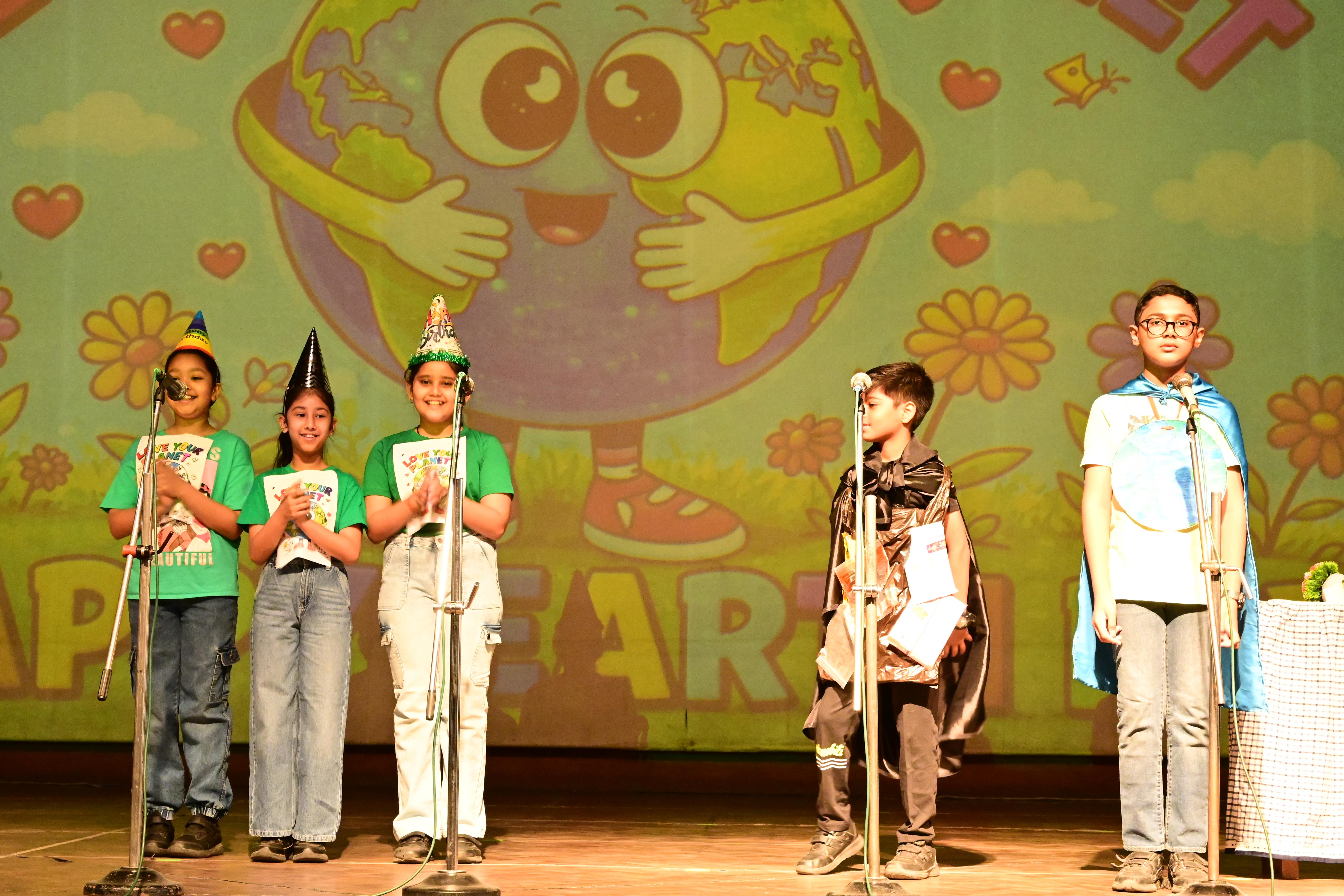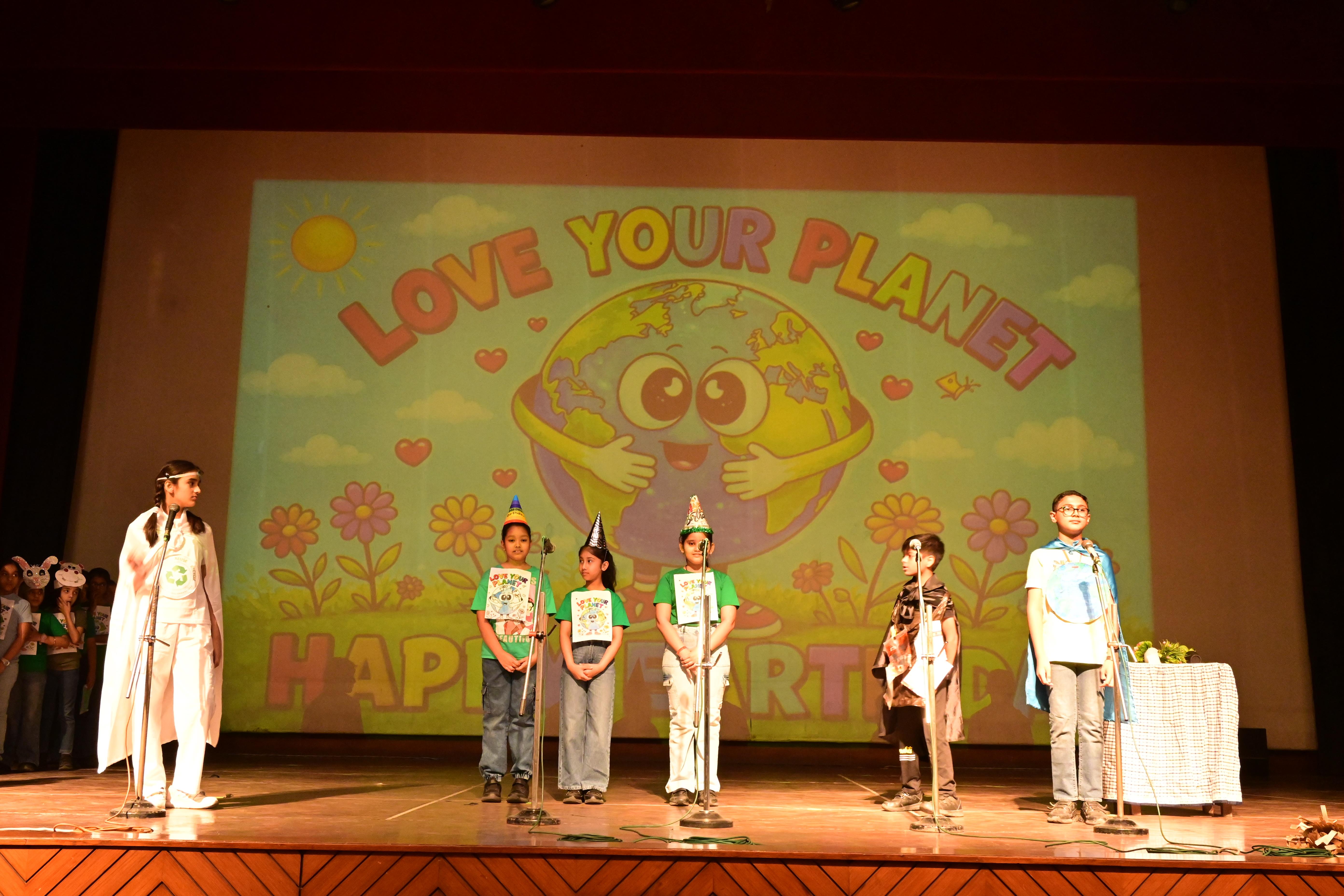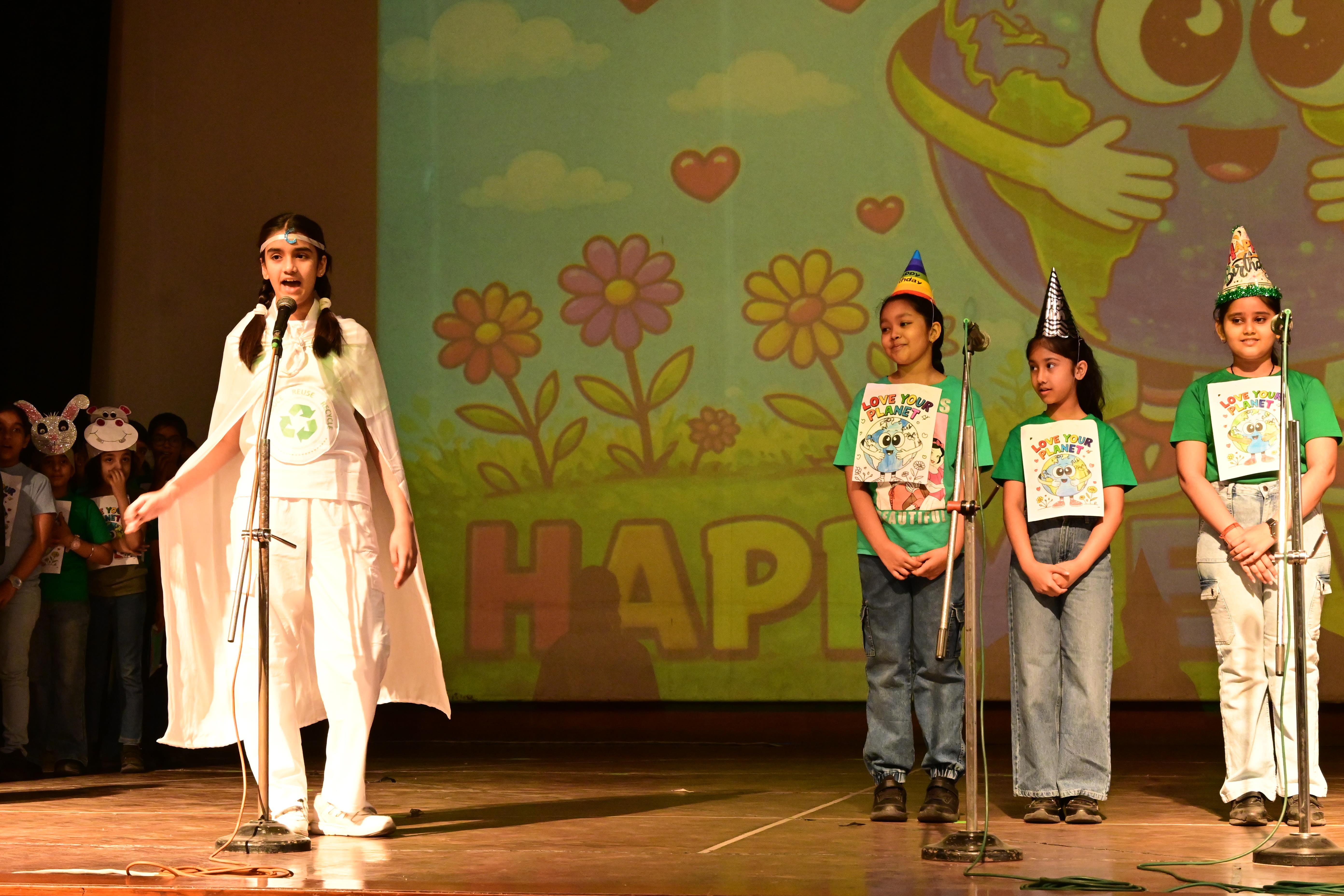 The students of Class V A presented a meaningful skit on Earth’s Birthday – Save Our Planet. Through their performance, they showed how human activities and plastic pollution are harming our Earth. With the message of “Reduce, Reuse, Recycle” and saying no to plastic, the children encouraged everyone to take responsibility.The assembly concluded with the song , ‘We Shall Overcome’ and a pledge to plant more trees and keep our planet clean.