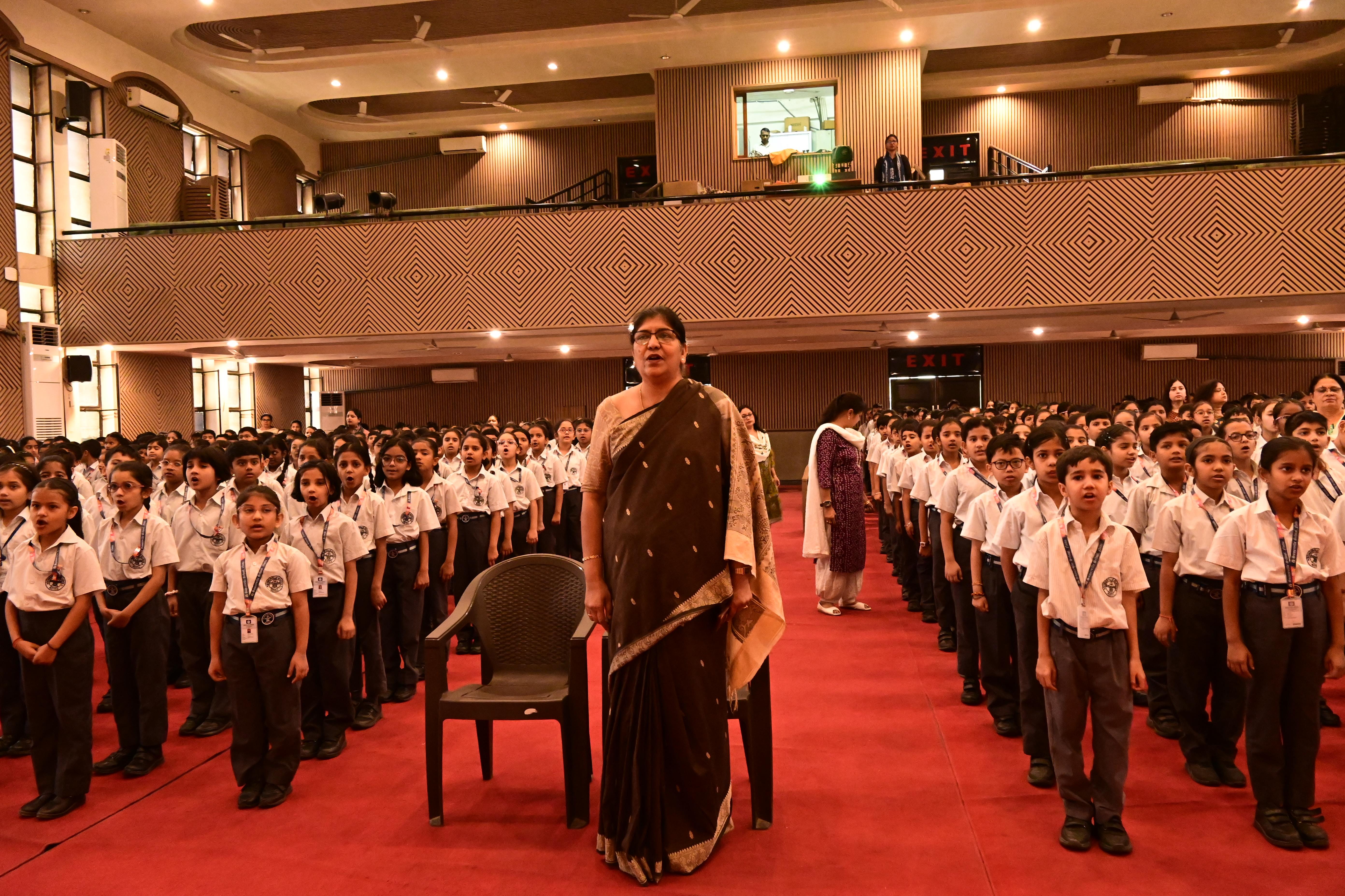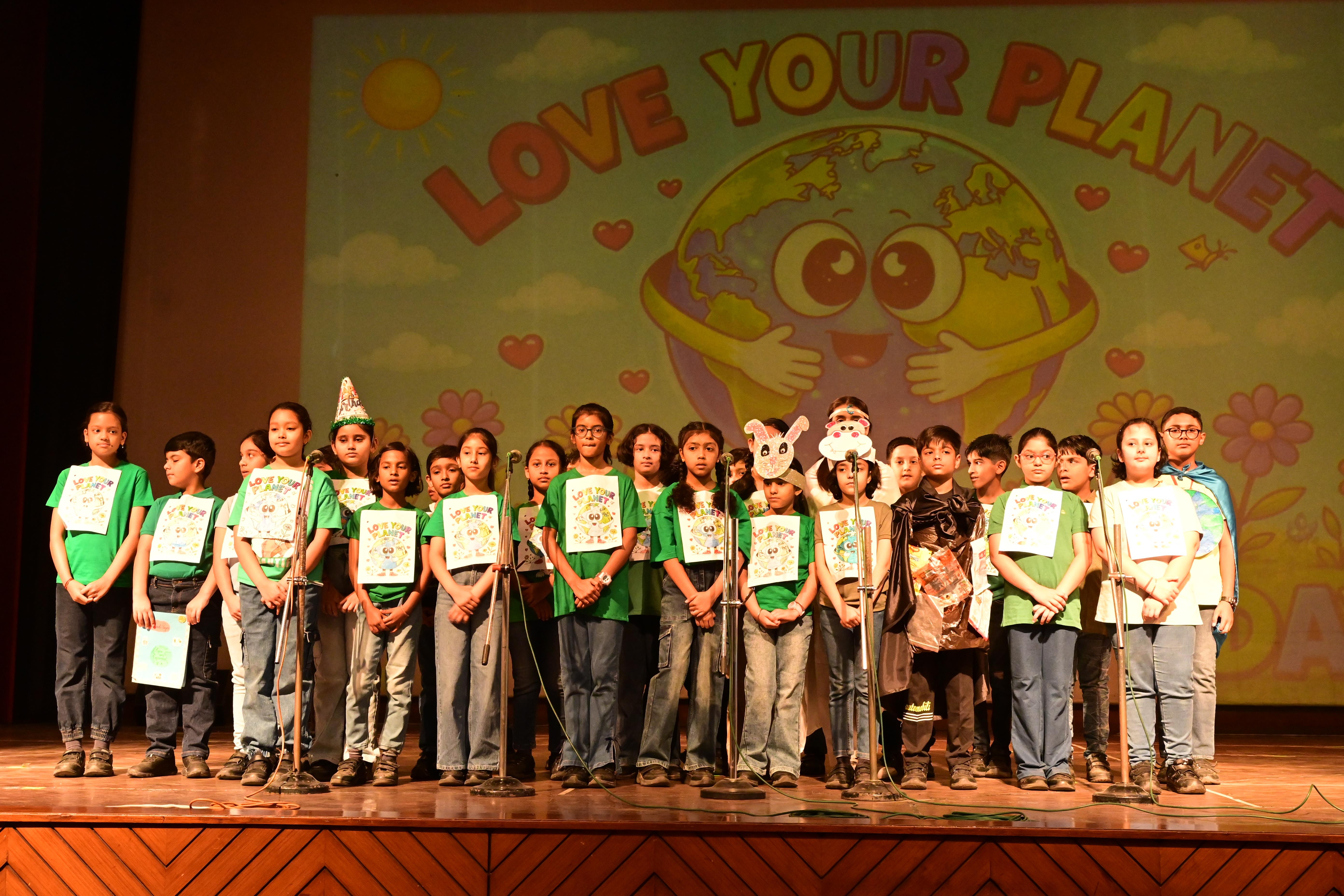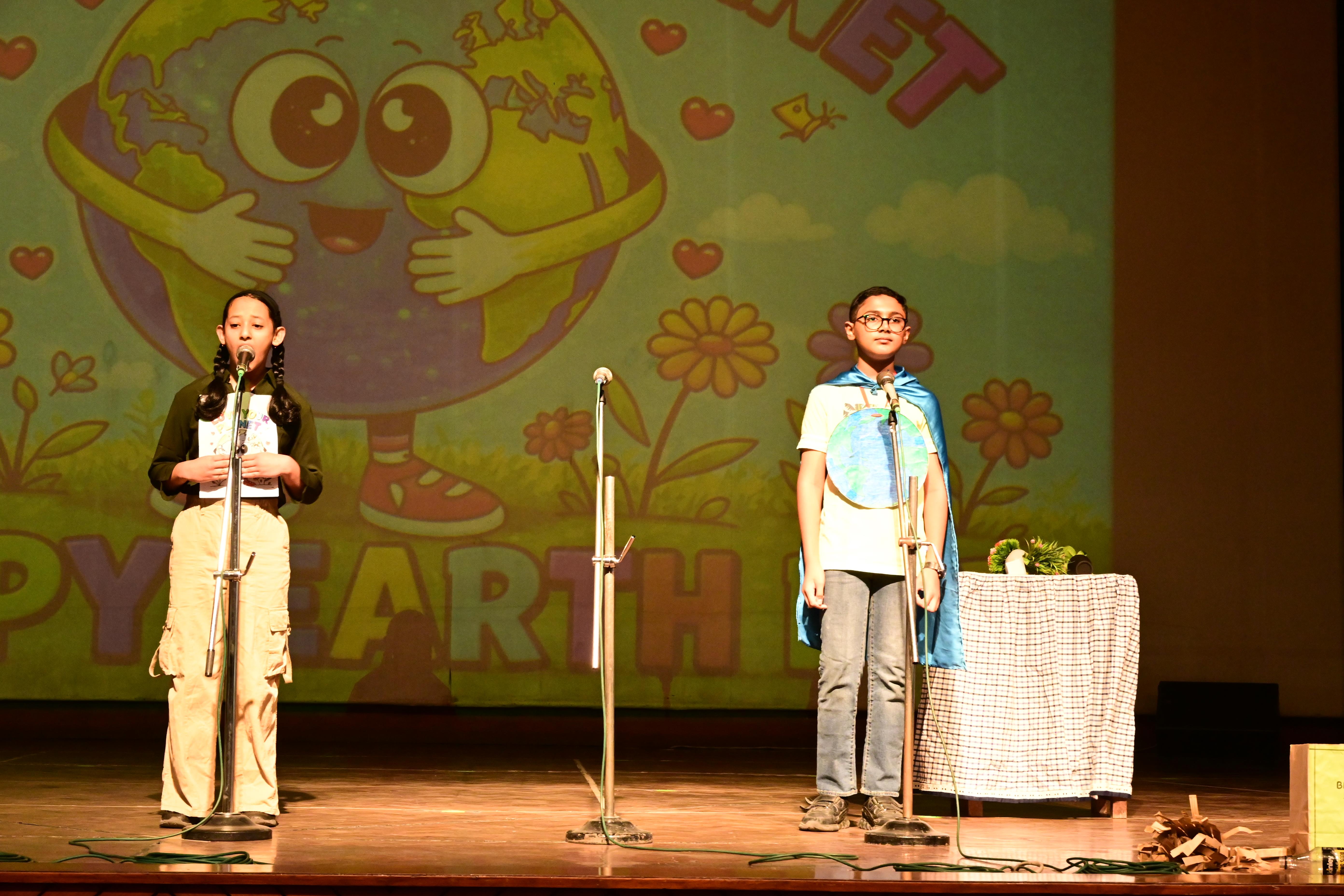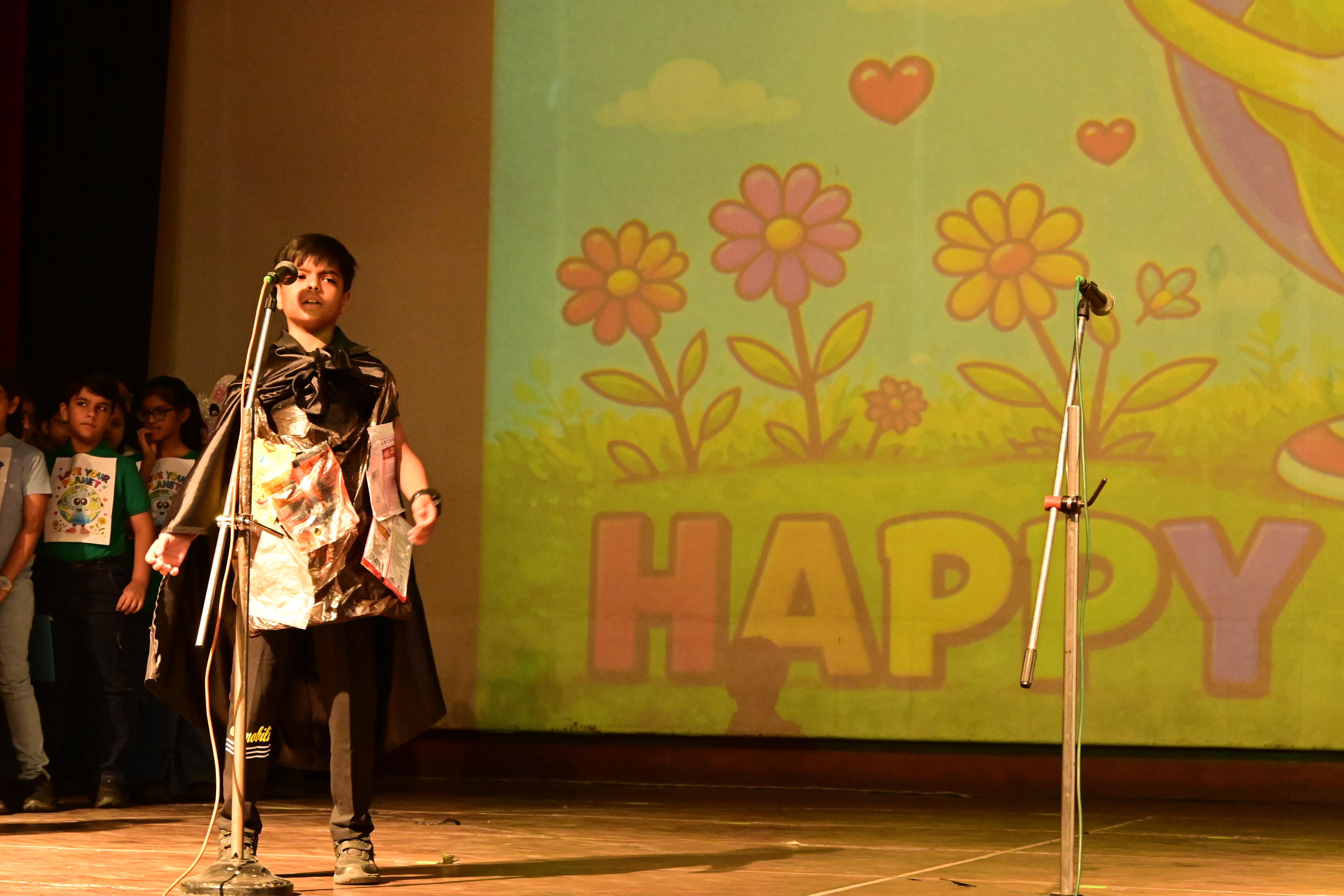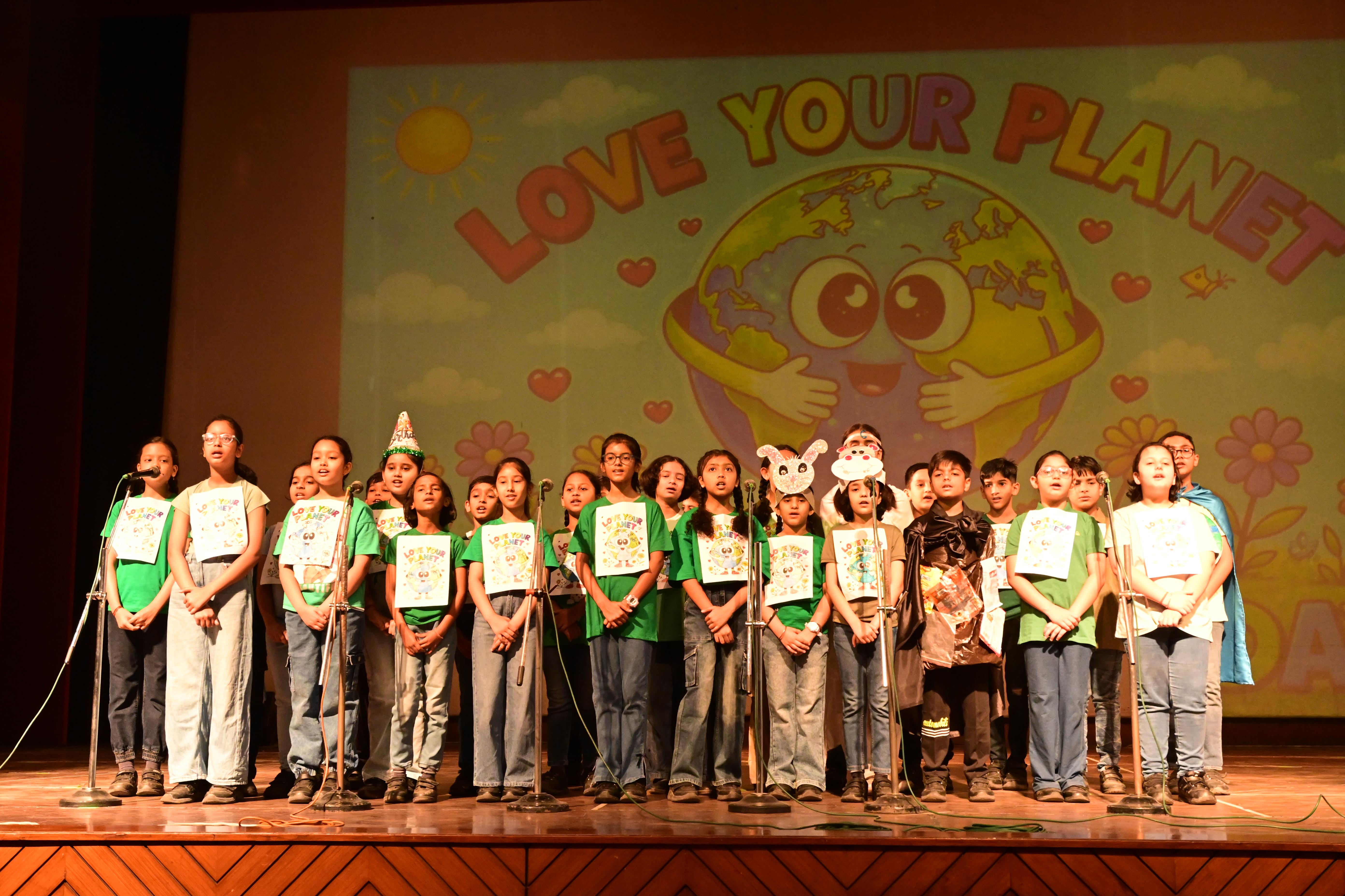 The students of Class V A presented a meaningful skit on Earth’s Birthday – Save Our Planet. Through their performance, they showed how human activities and plastic pollution are harming our Earth. With the message of “Reduce, Reuse, Recycle” and saying no to plastic, the children encouraged everyone to take responsibility.The assembly concluded with the song , ‘We Shall Overcome’ and a pledge to plant more trees and keep our planet clean.