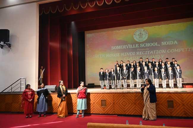 The Inter-House Hindi Recitation Competition was a wonderful celebration of language and expression. Students showcased their talent by reciting long poems with confidence, clarity, and emotion. Their performances reflected creativity, hard work, and a deep appreciation for Hindi literature. The event not only boosted students’ confidence but also inspired them to develop their public speaking skills. The competition concluded on a joyful note, leaving everyone motivated and proud.
