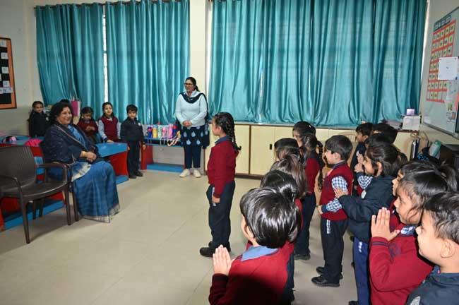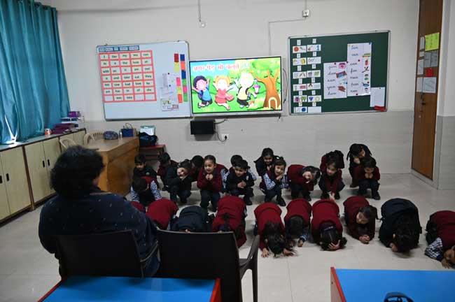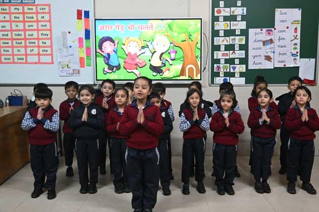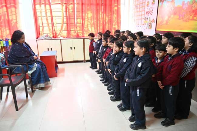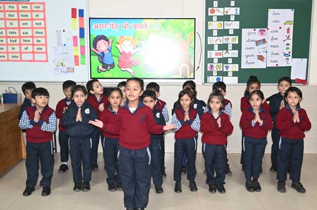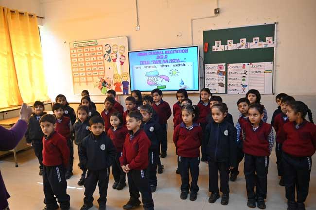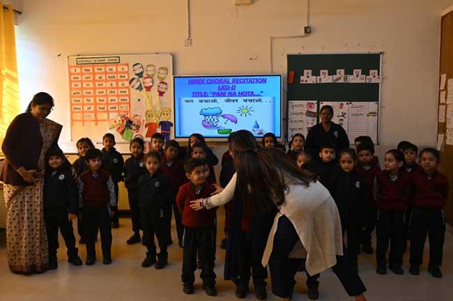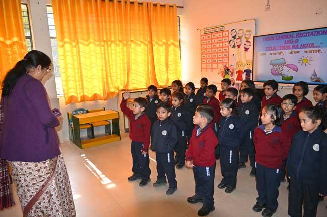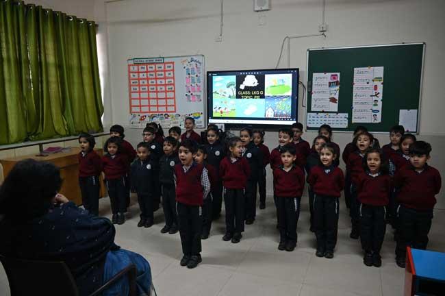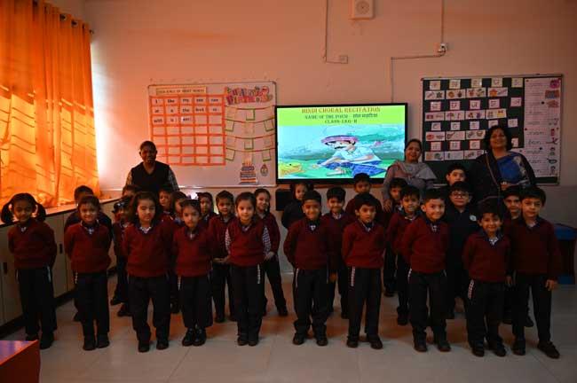 A Hindi choral recitation was presented by the children of LKG today. All the children were very excited to present their poems in front of Principal Ma'am and Vice principal ma'am. Principal ma'am and Vice principal ma'am appreciated for the tremendous confidence, teamwork, and good pronunciation children showed during their performance. The presentation left each child with a positive and energetic learning.