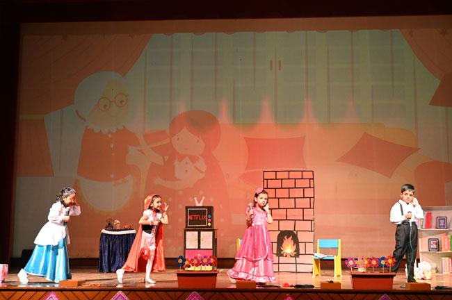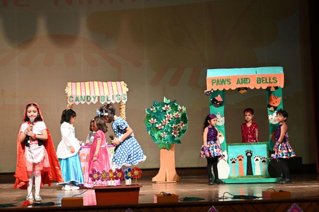 The students of UKG brought the timeless fairy tale Little Red Riding Hood to life with great enthusiasm and charm. Dressed in vibrant costumes, the little ones performed with remarkable confidence, speaking their dialogues clearly and expressively. The play was beautifully woven with lively dances, adding colour and joy to the performance.